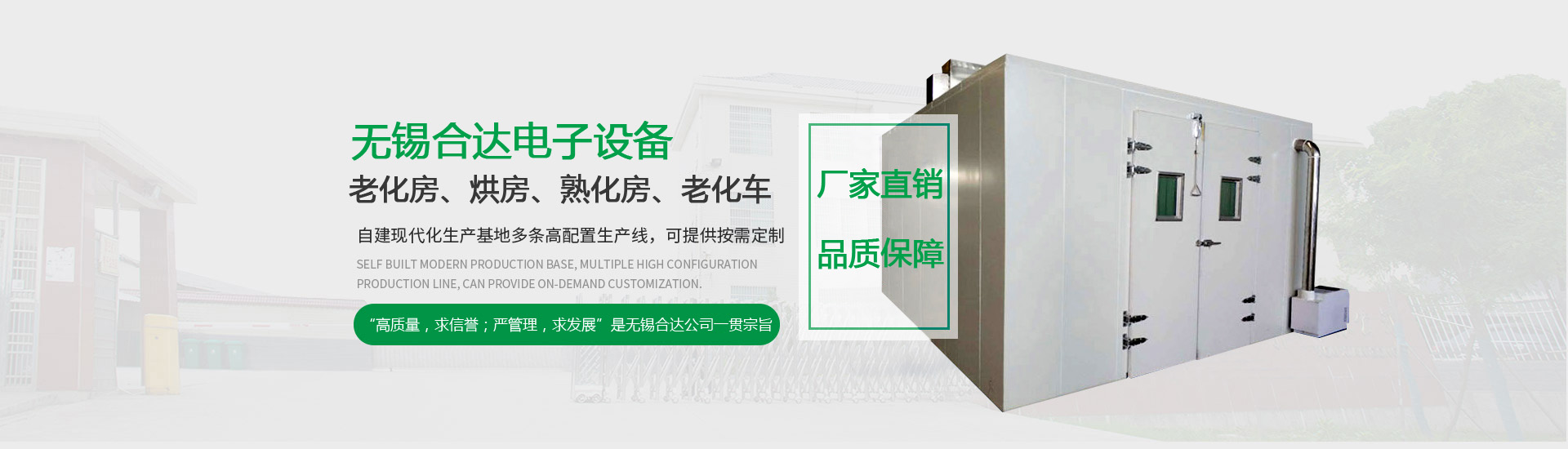 无锡合达电子设备有限公司专业生产:老化房,烘房,电加热烘房,烘箱,烤箱,工业烤箱。公司配备一支技术强劲、训练有素的队伍,从事各种老化房,烘房,电加热烘房,烘箱,烤箱,工业烤箱等产品的安装改造、保养维修工程。秉承“专业、敬业、精业”的企业精神,坚持“诚信、务实、进取、永续”的经营理念,同时依靠先进的技术和设备,严把产品质量关,追求客户满意度。公司依托自身的研发力量,广泛开展技术和学术交流,使产品更广泛地服务于众多行业。为提供客户全面、便捷的服务,概念科技积极延伸服务体系,可根据客户需求,提供定制化的产品、包装与服务。