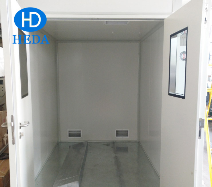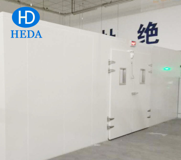 2. 房体材料采用耐火玻璃棉夹心板和专用铝合金型材装配成,夹心板厚度50mm,导热系数(λ)为0.031瓦/米·℃,使用温度最高可达120℃,耐火等级符合DIN4102标准;